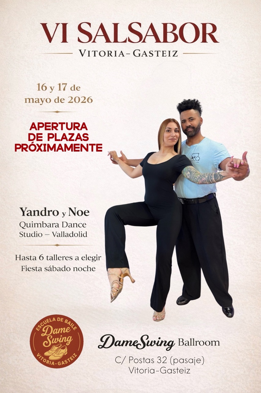 Este año contaremos con Yandro y Noe (Quimbara Dance Studio – Valladolid) como profesores invitados, y estamos preparando un fin de semana completo de baile, formación y buen ambiente en DameSwing Ballroom.