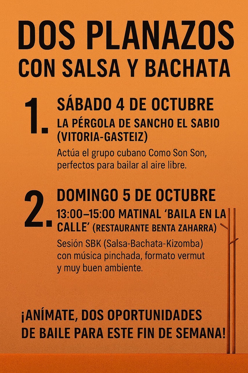 2) Domingo 5 de octubre, 13:00–15:00 – Matinal “Baila en la Calle” (Restaurante Benta Zaharra, Elorriaga)