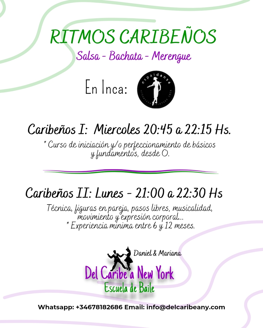 - Inicio de nuevo curso en febrero, de caribeños nivel abierto, para personas con experiencia en Salsa y Bachata de un mínimo de 6 a 12 meses.