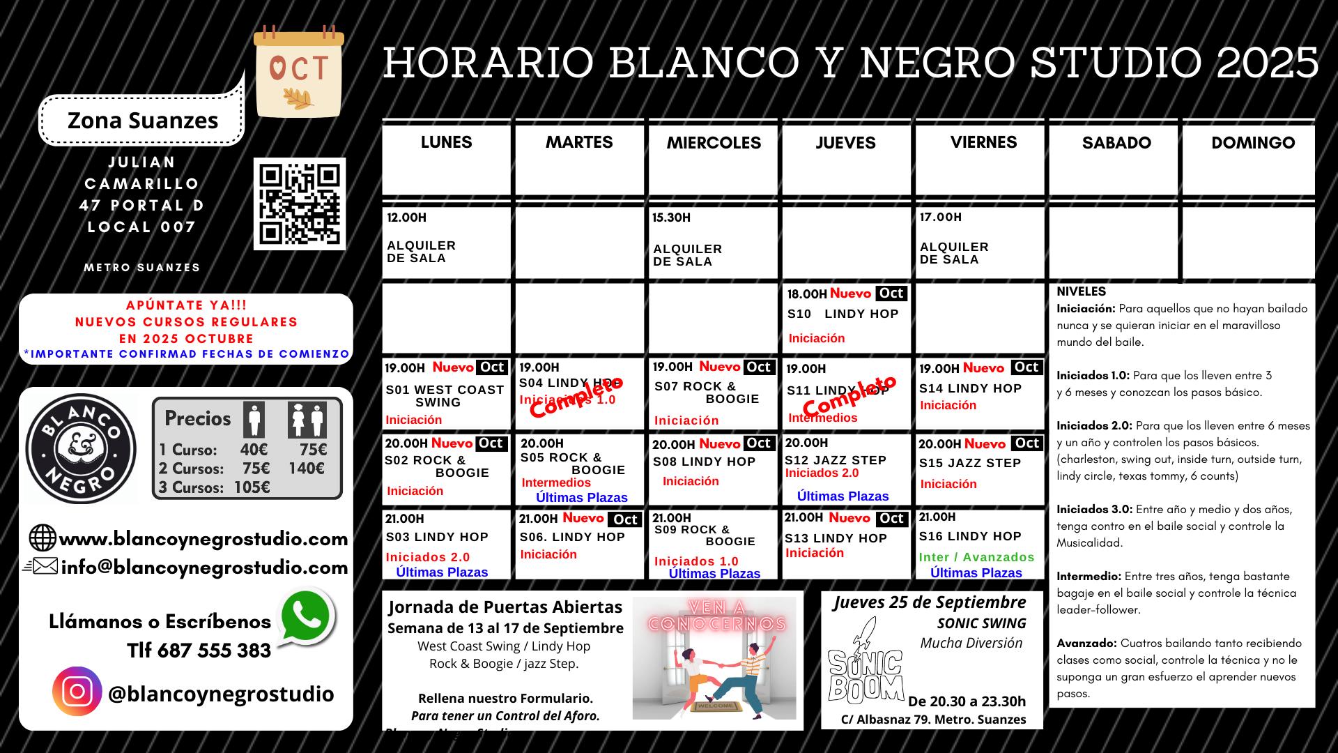 Todos nuestros Horarios del Nuevo Curso Regular 2025/26 toda la información http://blancoynegrostudio.com/horarios-y-precios