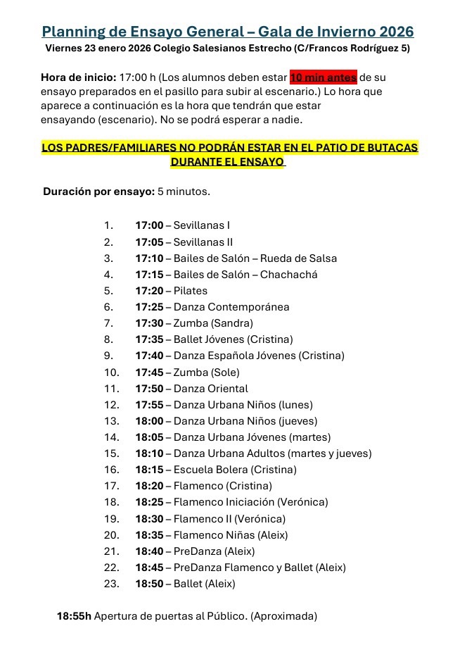 Información del horario