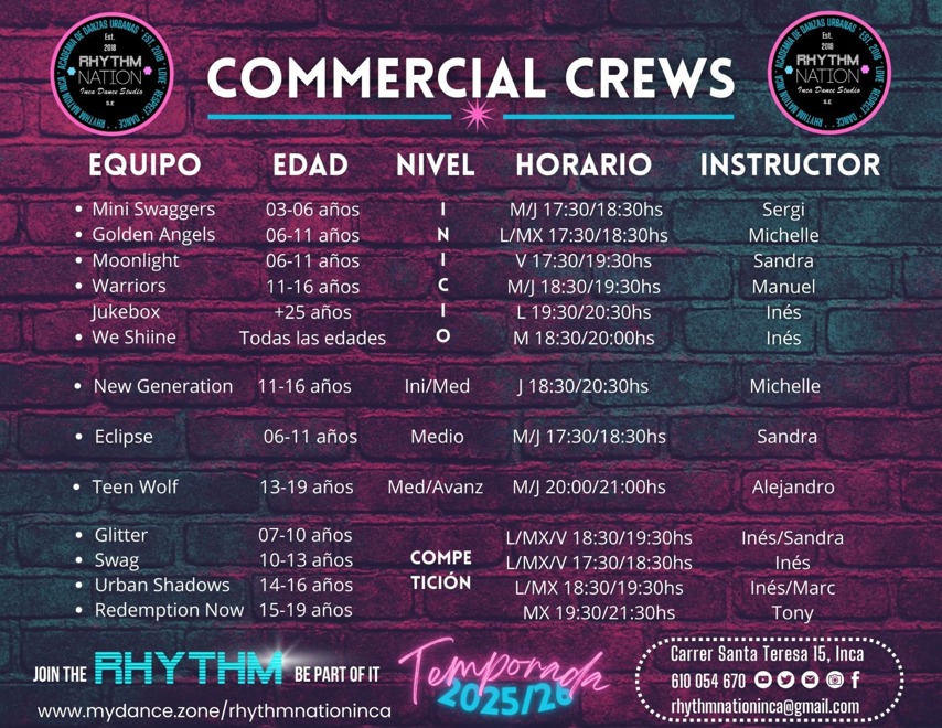Academia de Danza especializada en Danzas Urbanas en el corazón de Mallorca. Contamos con más de 12 Crews de Commercial, Crews regulares y de competición, un ambiente sano, donde aprender el valor del trabajo en equipo.