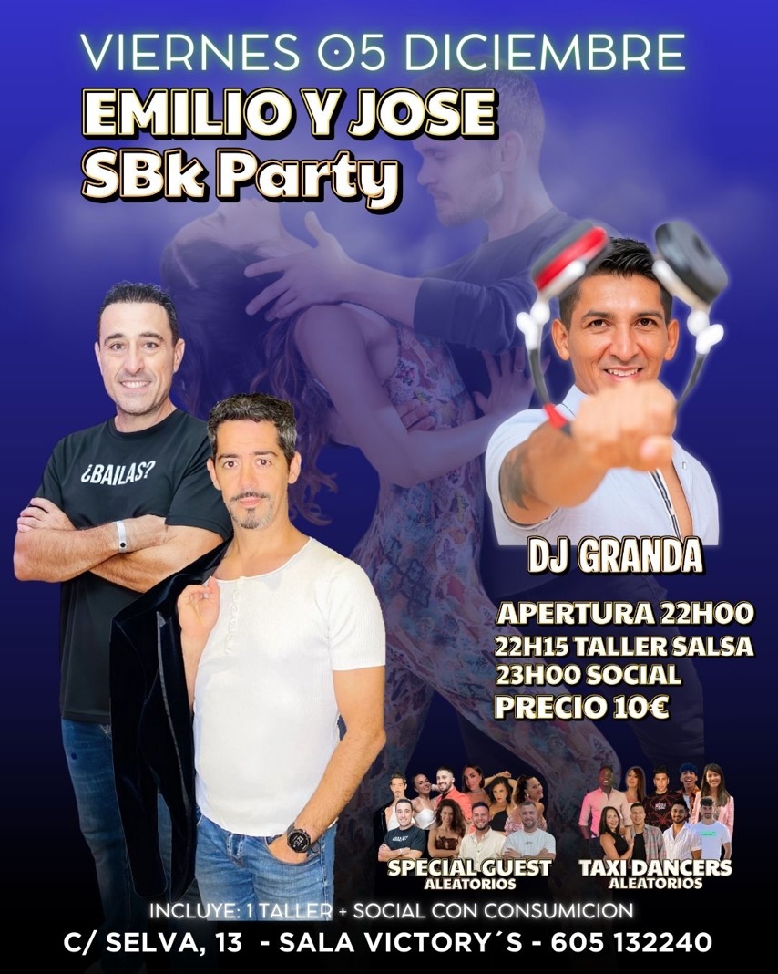 Prepárate para una SBK Party espectacular con Emilio y Jose, un taller súper divertido y un social para bailar sin parar.